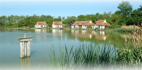 Des chaumières environnées d'eau avec pontons, pilotis, terrasses, bois, tomettes et roselières. Pour un remake de Ma cabane au Canada version Brenne sauvage!
