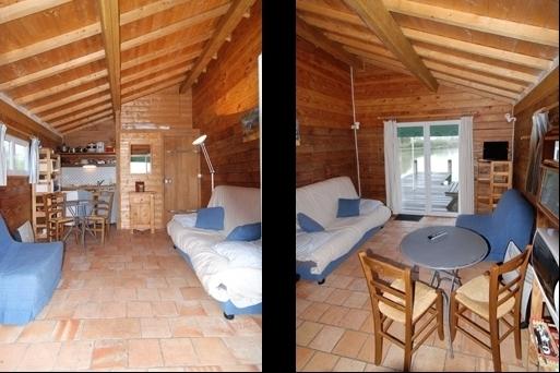 Deux maisons (n°1 & n°5) avec 6 à 8 couchages : une chambre avec un lit de 140, une chambre avec 2 lits superposés, une mezzanine avec 2 lits de 90 et un canapé lit dans le séjour.